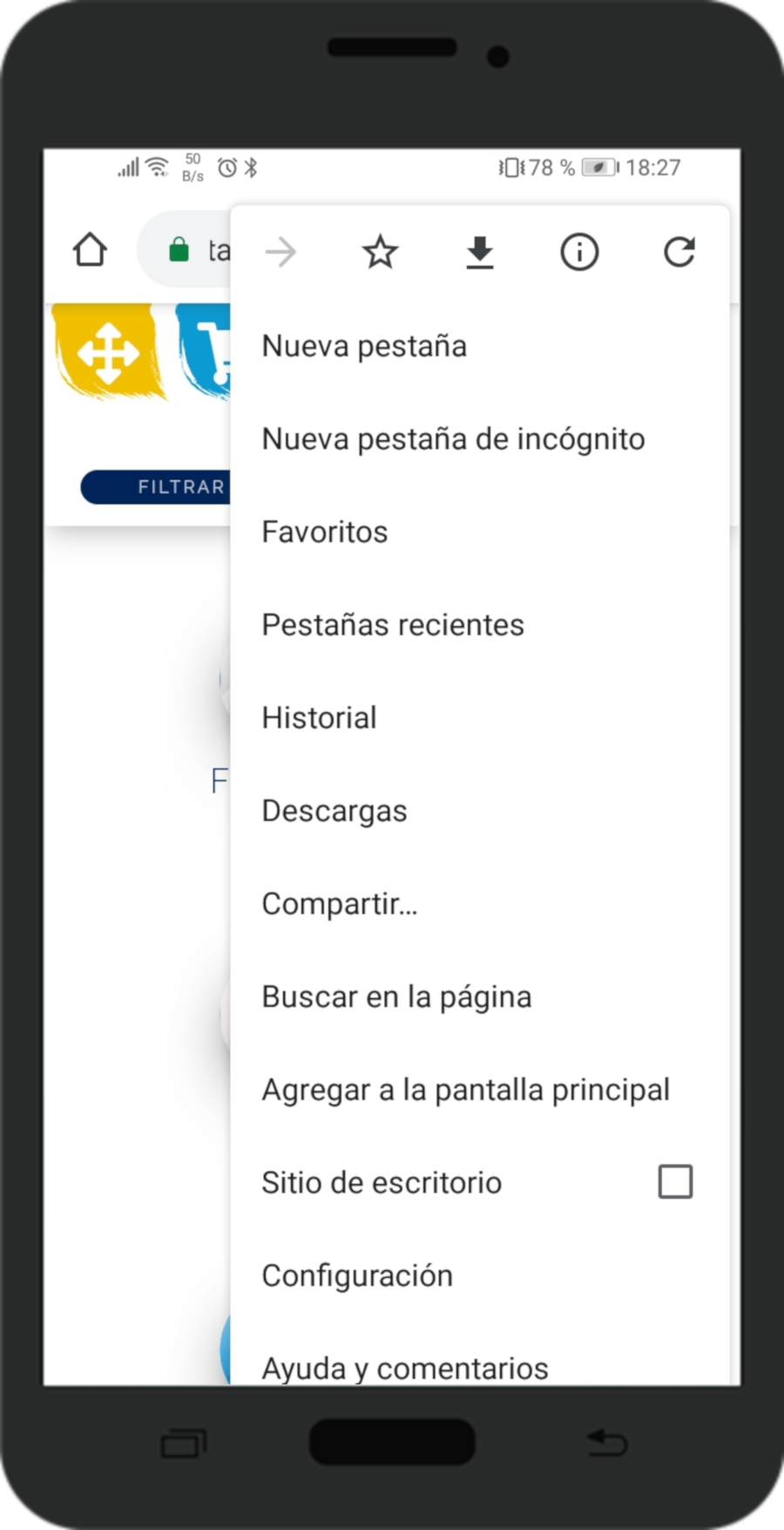 "Añadir a pantalla de inicio" ó "Agregar a la pantalla principal".