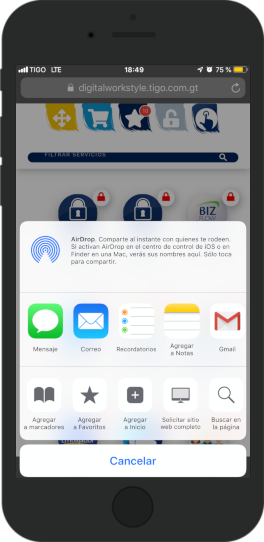 Ingresamos al navegador Safari en el dispositivo.
