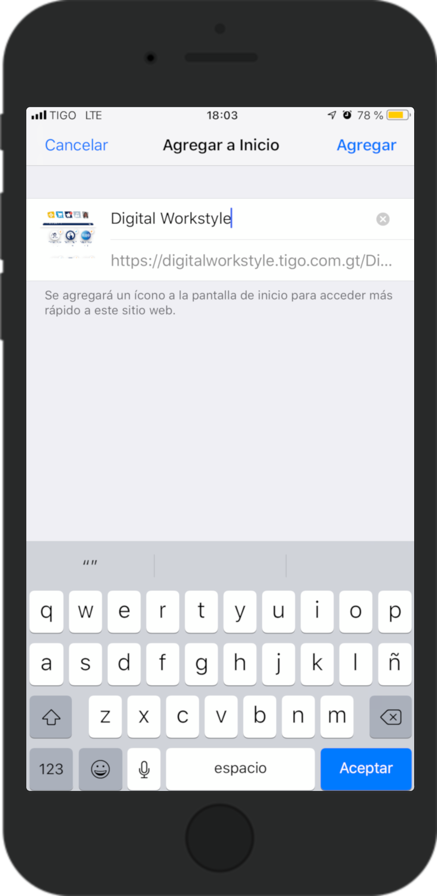 Listo, ya tienes instalada la WebApp de Digital Workstyle en tu dispositivo iOS.