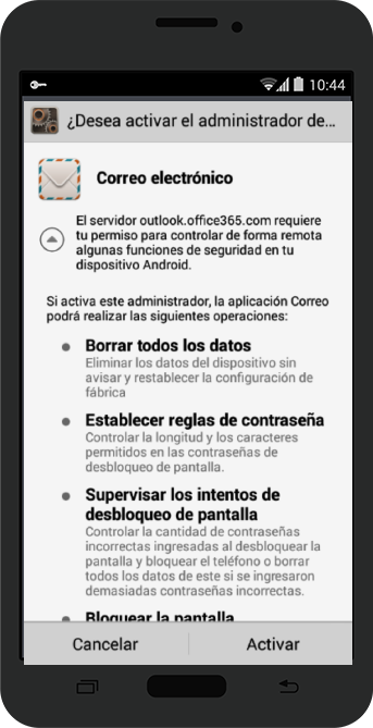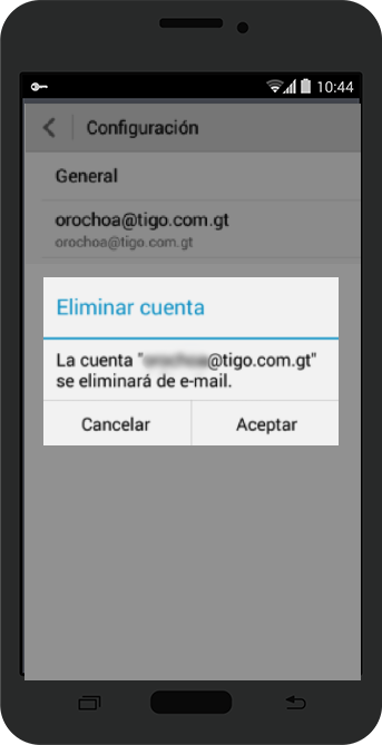 Seleccionar la configuración actual. Si ya tiene configurada su cuenta de correo de Exchange en su dispositivo móvil, es necesario que la elimine y la vuelva a configurar.