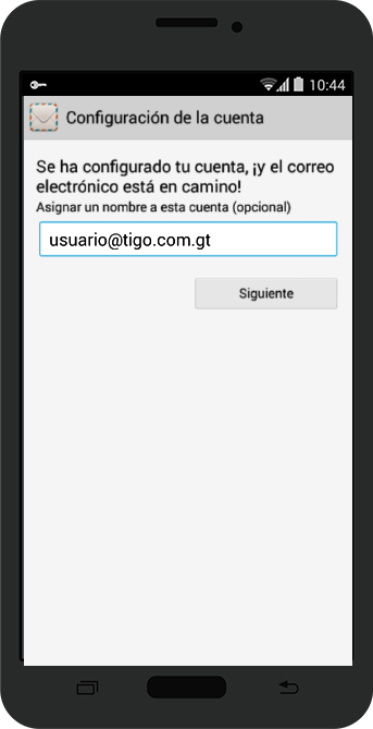 Para configurar su nueva cuenta deberá ingresar su dirección de correo y presionar el botón Siguiente.
